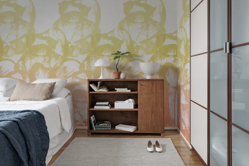 Le cascate d’acqua di una fontana o di una sorgente naturale sono ipnotizzanti. Un elemento naturale catturato nella sua forma più bella. Il colore pesca sul fondo si evolve in una luminosa tonalità gialla brillante nella parte superiore. Un elegante murale che è adatto ad un ambiente lussuoso e piacevole.
